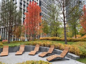 • Панорамное остекление с видами на город и частный парк комплекса