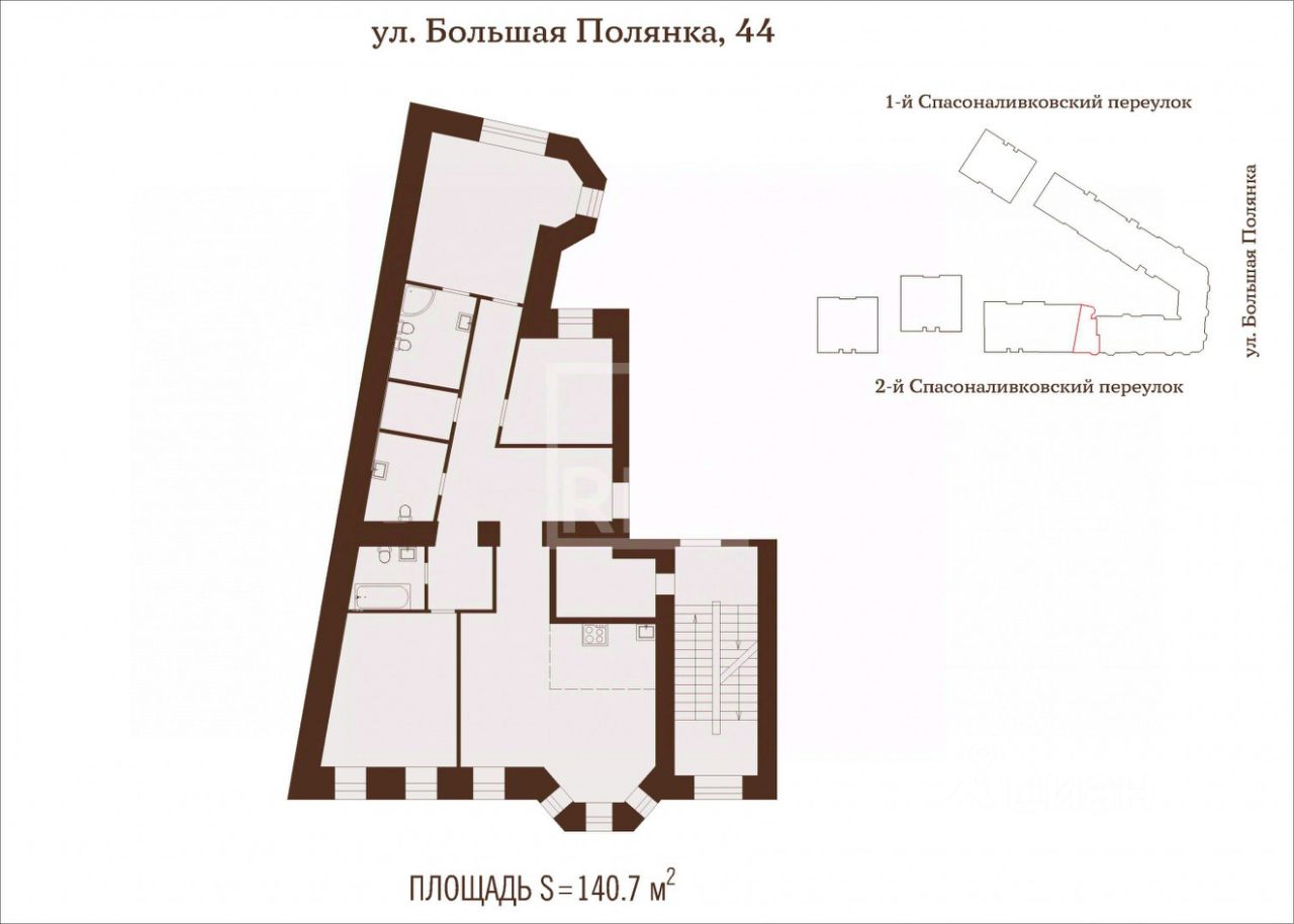 Арт. 116410075 Предлагается квартира свободной планировки с 3-мя спальнями общей площадью 140,7 м² в аристократическом комплексе элитных особняков "Полянка/44" в престижном районе Якиманка (ЦАО) в нескольких минутах пешком от метро "Полянка" и "Октябрьская".