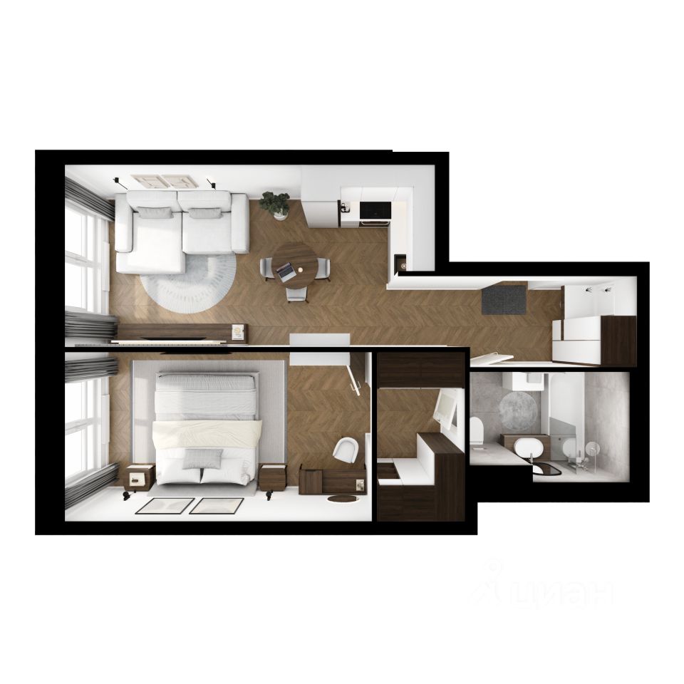В "Кронштадтском 9" умные планировки: вы сами выбираете, как их использовать, чтобы ваша квартира была максимально комфортной именно для вас. Например, постирочная может стать студией звукозаписи, а зона для гардероба — кабинетом. В новых корпусах есть квартиры с кухней-нишей, сквозным санузлом и мастер-спальней с собственной ванной.