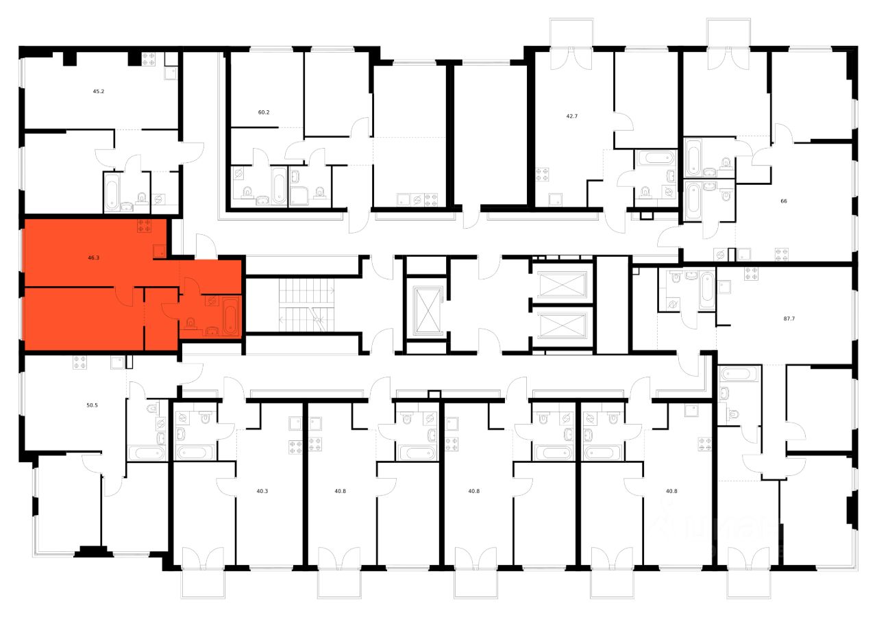 Продаётся 1-комн. квартира площадью 46,3 кв.м на 4 этаже 12 этажного дома (Корпус 1.1.2, Секция 2) проекта ПИК Кронштадтский 9. Светлый просторный подъезд на уровне земли, функциональная планировка, большие окна, предчистовая отделка.