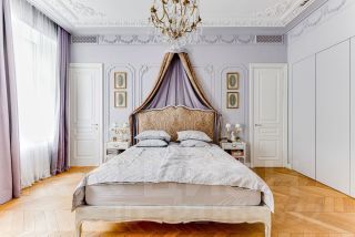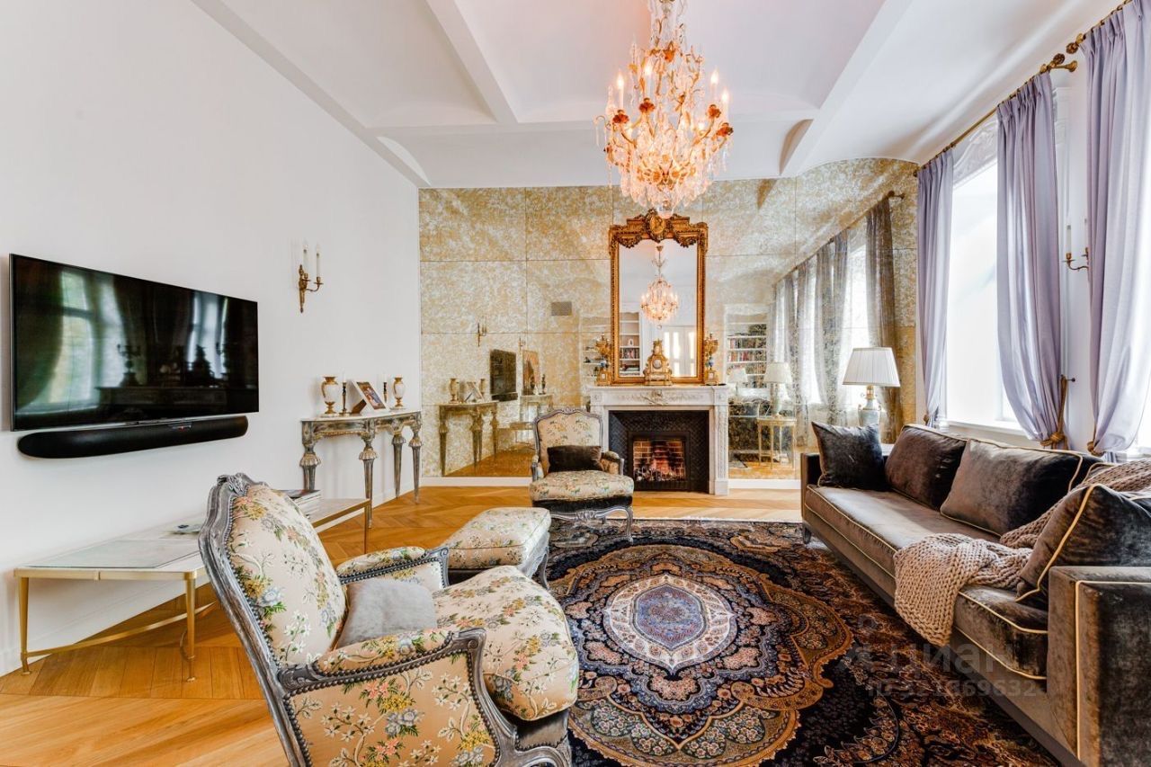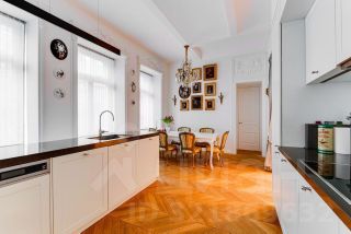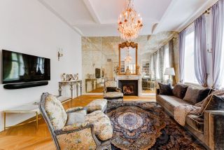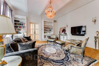 Роскошный интерьер выполнен в светлых тонах с использованием натурального паркета, изысканной лепнины, предметов искусства и антиквариата и высококачественных отделочных материалов премиальных производителей.