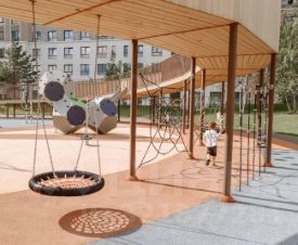 Детские и спортивные площадки, воркаут, скейт-парк, хоккейная коробка, кинологическая площадка, теневой занавес, зона отдыха, пляж, скалодром, фонтан, арт-объекты на территории.