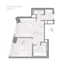 1-комнатная квартира площадью 49,4 кв.м. Удачное планировочное решение позволяет организовать мастер-спальню со своим санузлом или кабинет, а также зону кухни-гостиной, площадью 27,3 кв.м. Из всех панорамных окон вы сможете наблюдать невероятный вид на реку, МГУ, Воробьевы горы и башни Москва-сити. Все комнаты ориентированы на юго-запад и запад, поэтому можно будет наблюдать красочные закаты. Квартира предлагается с финишной, дизайнерской отделкой, включая встроенный кухонный гарнитур со всей необходимой бытовой техникой.