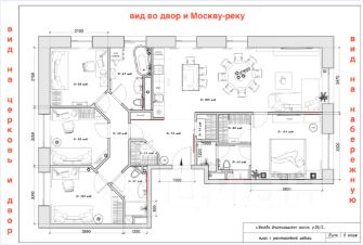 Квартира расположена на комфортном 9 этаже, панорамные окна квартиры выходят на 3 стороны и обеспечивают прямой и боковой вид на Москва реку, а также - внутренний двор и детскую площадку.