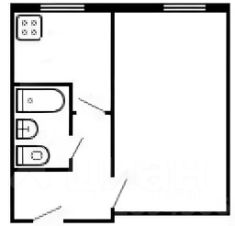 Жилая площадь 21 м². Можно легко разделить на две комнаты стеклянной перегородкой. На кухне раскладное кресло-кровать ИКЕА. Коридор длинный, и на перспективу можно сделать большой современный распашной встроенный шкаф буквой Г.