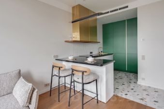 Кухня-гостиная, просторная прихожая, изолированная спальня, ванная комната с просторной душевой. В прихожей и спальне очень вместительные встроенные шкафы, эргономика жилья продумана до мелочей, каждый квадратный метр наделен функциональным смыслом.