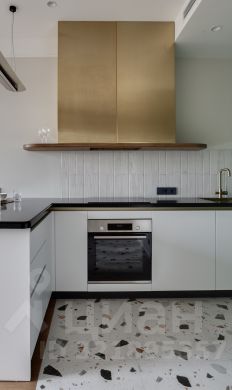 Кухня оборудована всей встроенной техникой Bosch, в ванной комнате встроенная стирально-сушильная машина Delonghi. Европейская сантехника.