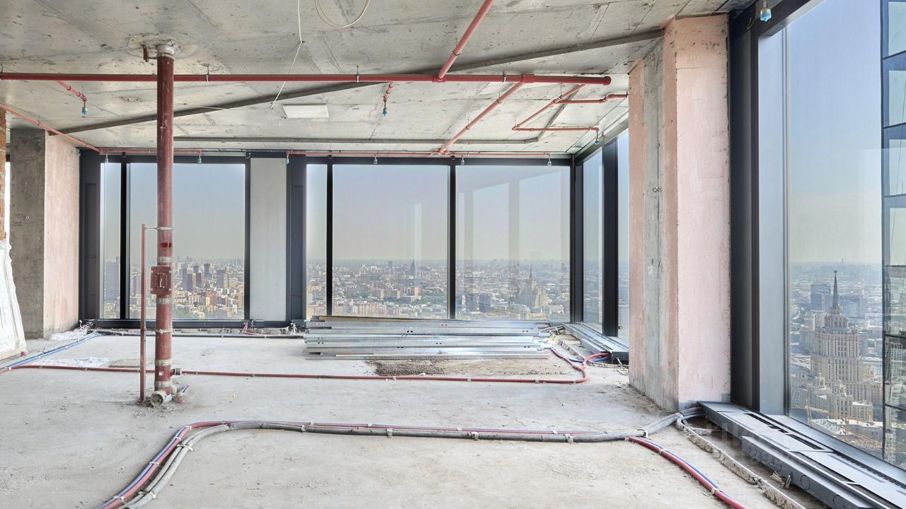 Башня "City Tower", 55 этаж. Пространство без отделки позволит реализовать уже готовый дизайн-проект или создать собственный интерьер. Возможная планировка: кухня-гостиная, мастер-спальня с ванной комнатой и гардеробной, 2 спальни, 2 санузла, прихожая с гардеробом, зона постирочной. Из панорамных окон открываются впечатляющие виды на центр Москвы — гостиницу "Украина", Хамовники, "Лужники" и Москву-реку.