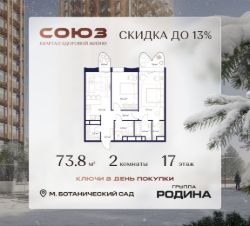 Продаётся 2-комнатная квартира площадью 73.8 м² на 17 этаже в Жилом Комплексе "Союз".