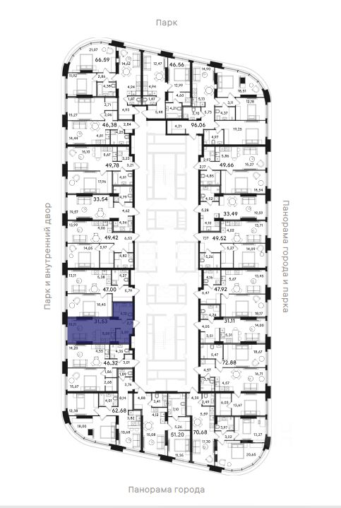 Высота потолков — 3,2 метра, большие окна в пол. В квартирах предусмотрены инженерные решения для акустического комфорта и чистый воздух благодаря близости парка и современным системам вентиляции.