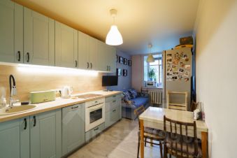 В квартире сделан косметический ремонт, на кухне и в ванной полностью заменена вся сантехника, потолки натяжные кроме ванной, пол- советский паркет (в неплохом состоянии) кухня- влагостойкий ламинат, лоджия с деревянными окнами. Широкие, вместительные подоконники. В коридоре небольшой встроенный шкаф.