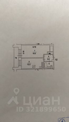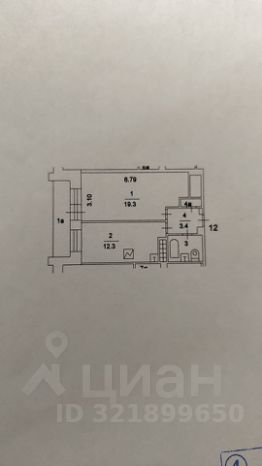 Имеется большая комната площадью 19.3 м2, в нише встроенный шкаф из комнаты выход на лоджию.