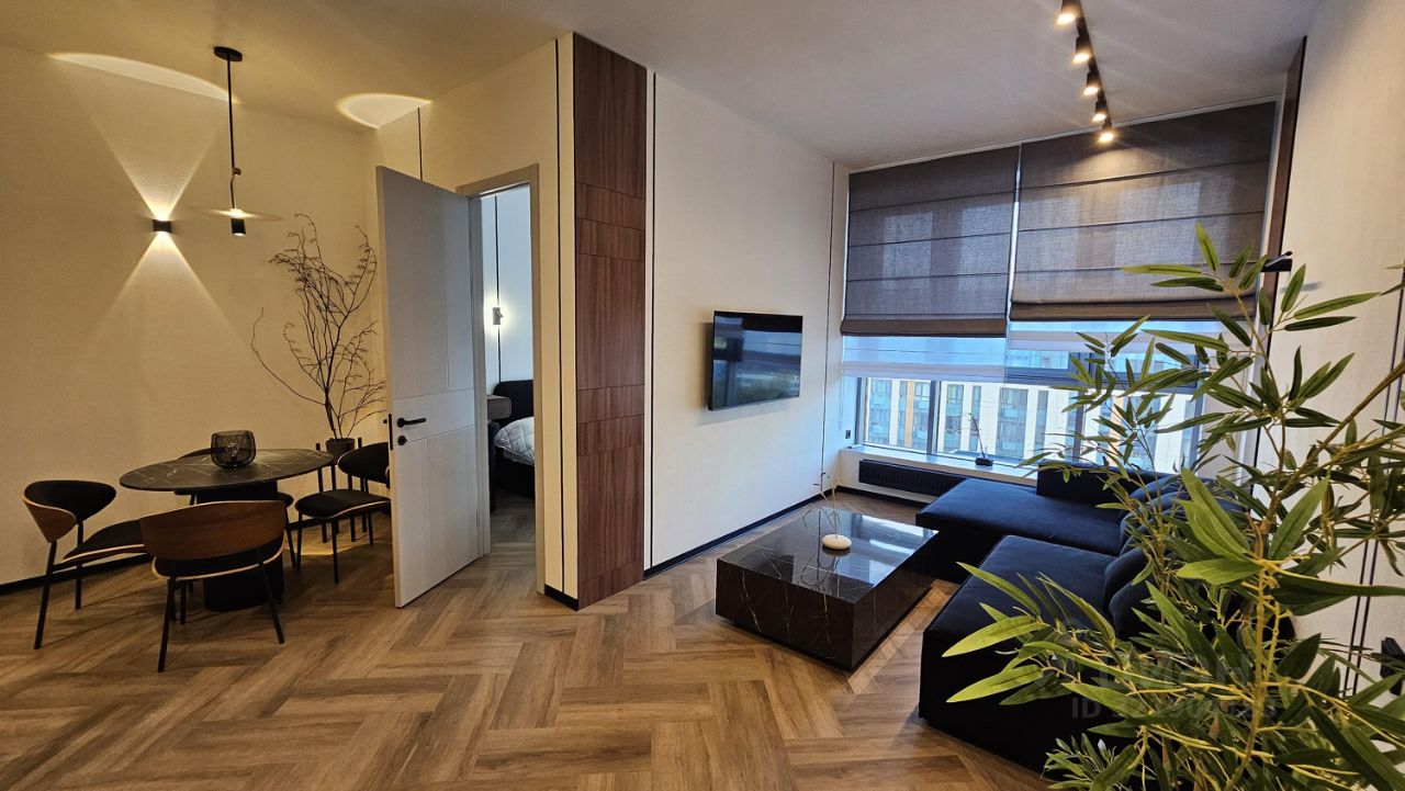 В квартире выполнен дизайнерский ремонт с использованием качественных материалов. Просторная комната и удобная планировка делают квартиру комфортной для проживания. Каждый метр квартиры продуман и функционально обставлен. Совмещенный санузел оборудован современной сантехникой. Окна выходят во двор, что обеспечивает тишину и уют.