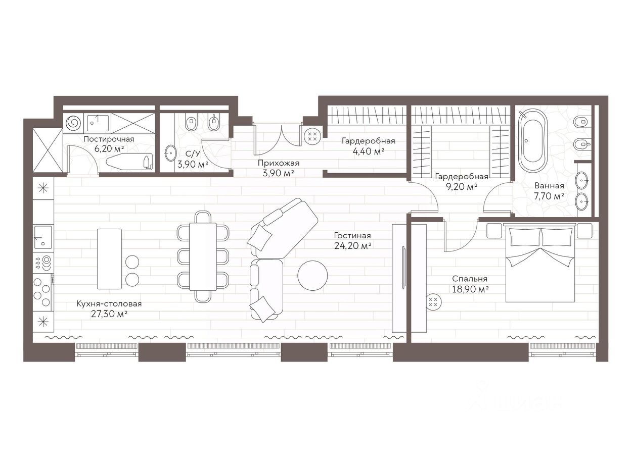 Каждая резиденция предлагает просторные планировки с высокими потолками до 3,5 метров, панорамными окнами с видами на Кремль и Храм Христа Спасителя, а также возможность адаптации под индивидуальные запросы будущего владельца.