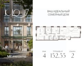 Продаётся 2-комнатная квартира общей площадью 152.55 м² без отделки на 4этаже клубного дома в центре Москвы.
