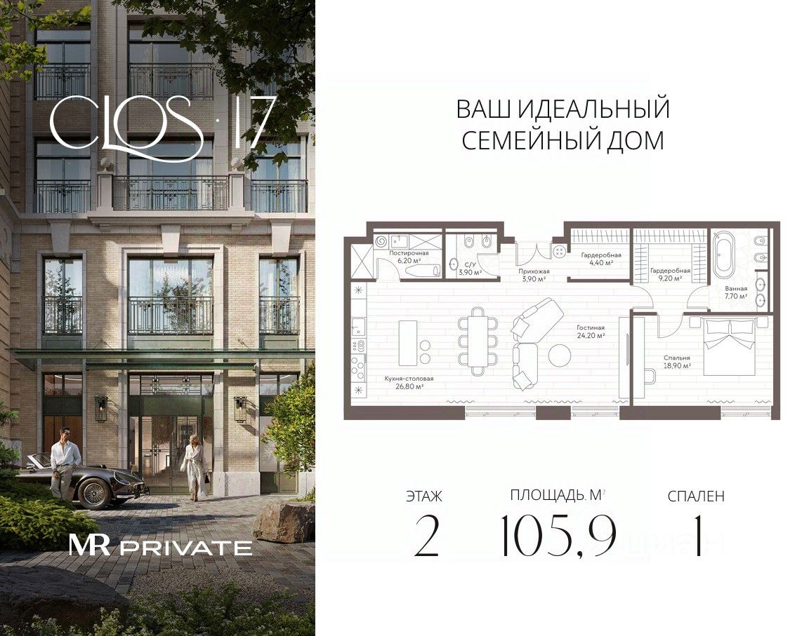 Clos 17 — клубный дом делюкс-класса от MR Private в Староваганьковском переулке. В проекте — 26 квартир площадью от 97 до 232 м² и два пентхауса с террасами, открывающими панораму на Кремль и Храм Христа Спасителя. Интерьеры вдохновлены парижскими ателье, но адаптированы к ритму Москвы — функциональные, просторные и изысканные.