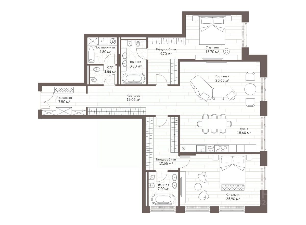 Каждая резиденция предлагает просторные планировки с высокими потолками до 3,5 метров, панорамными окнами с видами на Кремль и Храм Христа Спасителя, а также возможность адаптации под индивидуальные запросы будущего владельца.
