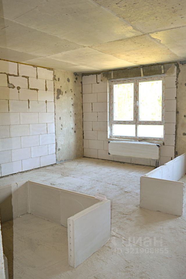 Квартира без отделки и стен, наличие двух водяных стояков позволит создать свою индивидуальную планировку.