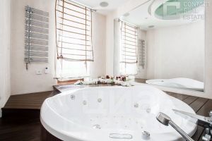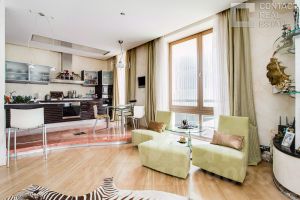 Планировочное решение квартиры удовлетворит запрос покупателей, кто отдает предпочтение простору и удобству. Большая спальня с ванной комнатой, кухня-гостиная, гардеробная комната, гостевой с/у. Два машиноместа в подземном паркинге.