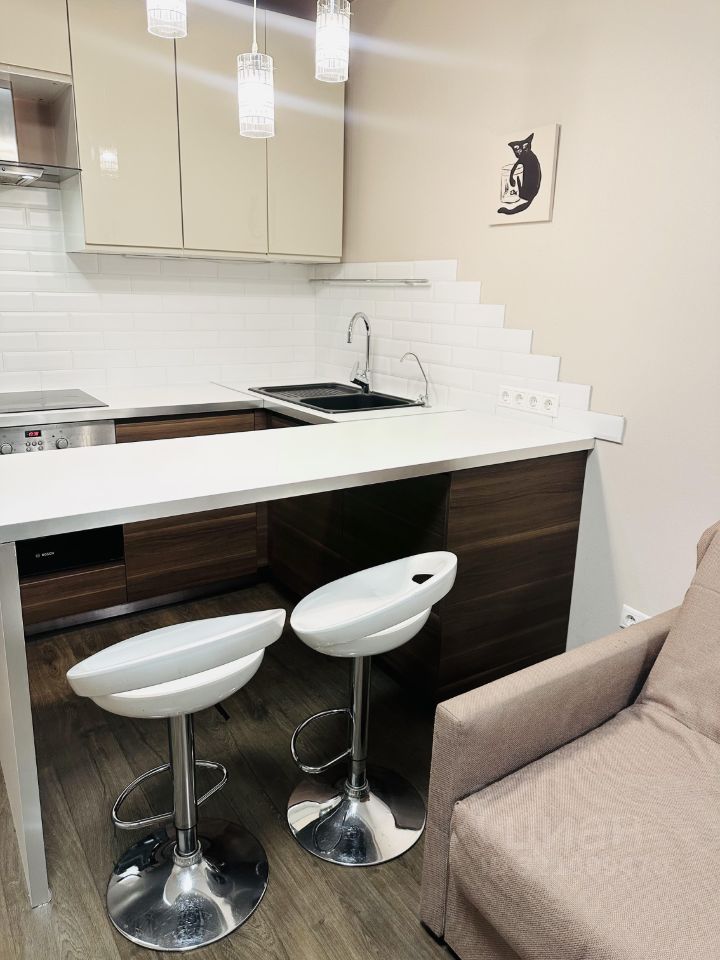Апартаменты с дизайнерским ремонтом, который сочетает в себе стиль и функциональность. Планировка студии позволяет максимально эффективно использовать пространство. Встроенная мебель и современная техника делают проживание комфортным и удобным. Совмещённый санузел выполнен в актуальных цветах и оснащён всем необходимым.