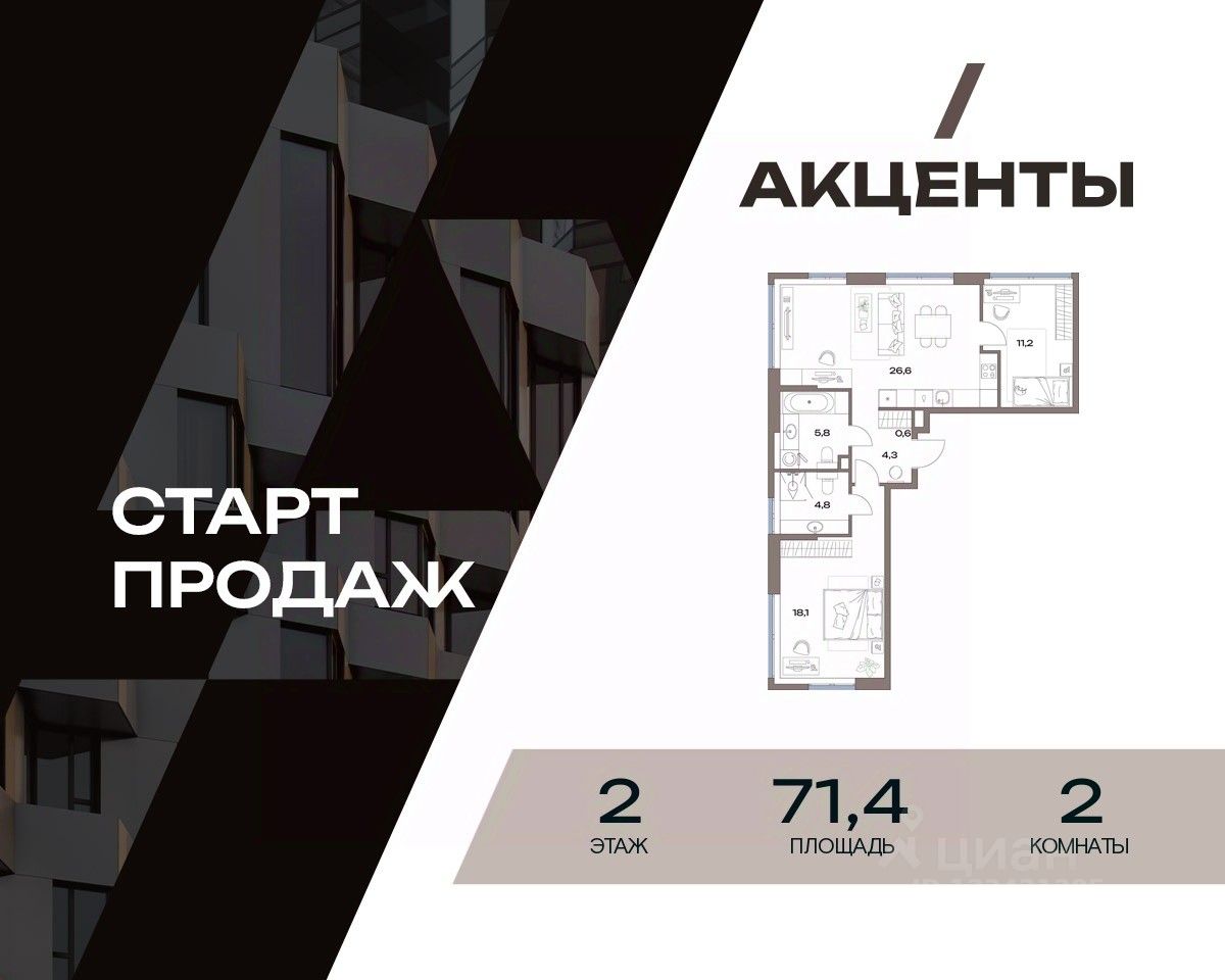 Молодой район для жизни "Акценты" в классе бизнес-лайт — точка роста на севере Москвы. Он предлагает элегантные и строгие фасадные решения, авторский ландшафтный дизайн, а также функциональные и доступные по цене планировки.