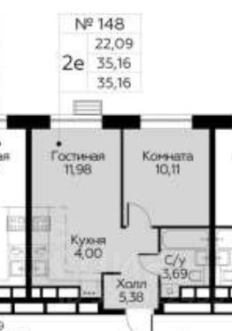 О квартире: квартира находится на 2 этаже из 22. Общая площадь составляет 35,16 м² из них, кухня-гостиная-15,98 м²; комната-10,11 м²; совмещенный сан.узел-3,69 м²; холл-5,38 м²