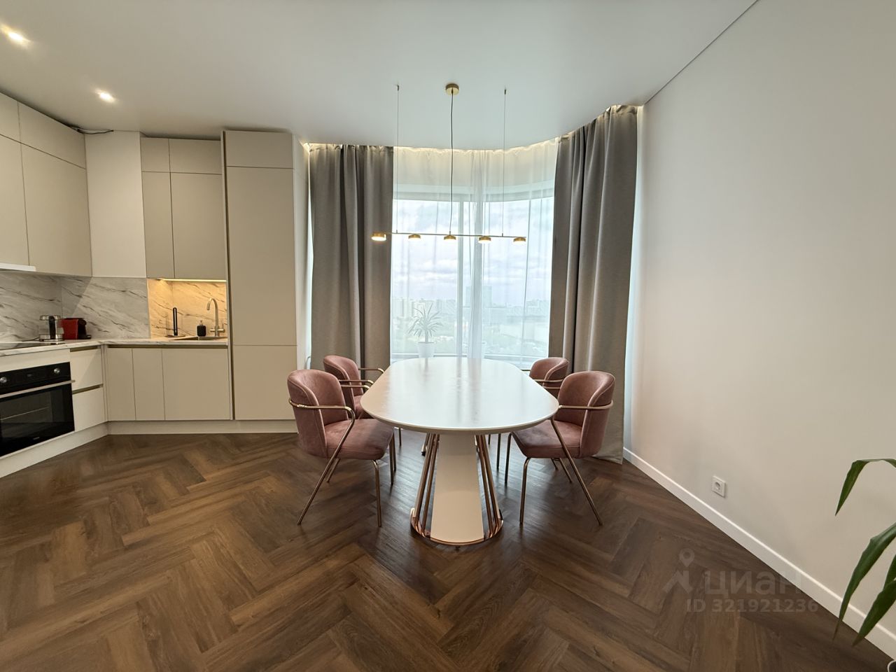Апартаменты находятся на 12 этаже 25-этажного дома. Высота потолков составляет 3 метра, что добавляет ощущение простора.