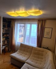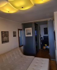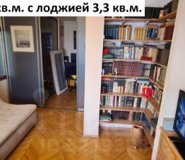 Квартира в хорошем состоянии. Просторная многофункциональная комната 19,9 кв.м. (кондиционер, два дивана, стулья, гардеробная) с лоджией 3,3 кв.м. (шкафы), большая зонированная кухня 9,9 кв.м. (кухонный гарнитур со встроенной стиральной машиной, барная стойка, обеденный стол, диван), санузел 2,6 кв.м. (раковина, зеркало, унитаз, ванная), прихожая 3,2 кв.м. Пластиковые окна.
