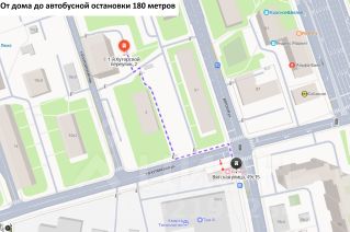 От дома до автобусной остановки 200 метров пешком, до станции метро Дмитровская 350 метров пешком, до МКАД 18 километров на машине. 40 минут пешком до Кремля, 20 минут пешком до Тимирязевского лесопарка; 10 минут пешком до знаменитого Бутырского рынка.