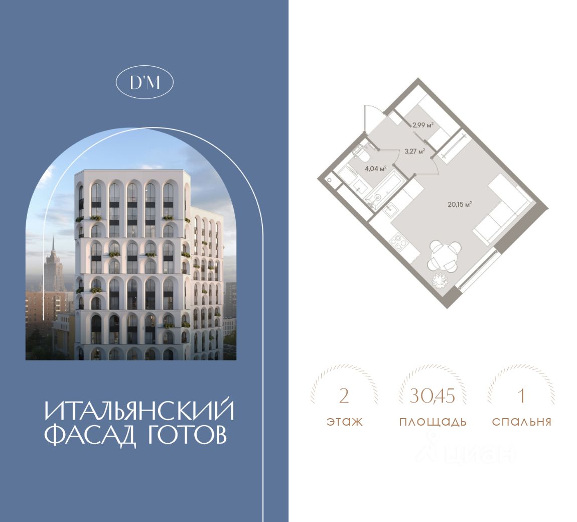 Продаются 1-комнатные апартаменты в строящемся доме (Корпус 1), срок сдачи: II-кв. 2026, общей площадью 30.45 кв.м., на 4 этаже. D`ORO MILLE - клубный апарт-комплекс премиум-класса в Дорогомилово. Его архитектура отсылает к величественным образцам древнеримского зодчества и в то же время, благодаря необыкновенной легкости, утонченности рисунка фасадов, устремлена в будущее. Весь его облик, все 14 этажей - это череда стройных воздушных арок, создающих ритмическую гармонию. И, если архитектура - это искусство, то клубный дом D`ORO MILLE, безусловно, произведение этого искусства, арт-объект. Причем не только снаружи: такую же высокую эстетическую планку держат внутри здания изысканные интерьеры общественных пространств, а на приватной территории комплекса - эффектный двор-сад.