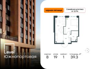 В северной части района Печатники продается 1-комнатная квартира площадью 39.30 кв.м без отделки. Квартира расположена на 19 этаже 49-этажного корпуса Корпус 8 в жилом комплексе комфорт-класса Level Южнопортовая (компания Level Group/Левел групп).