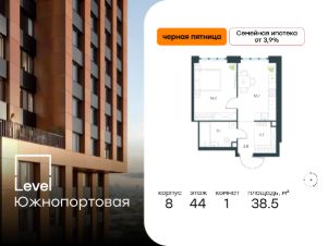 В северной части района Печатники продается 1-комнатная квартира площадью 38.50 кв.м без отделки. Квартира расположена на 44 этаже 49-этажного корпуса Корпус 8 в жилом комплексе комфорт-класса Level Южнопортовая (компания Level Group/Левел групп).