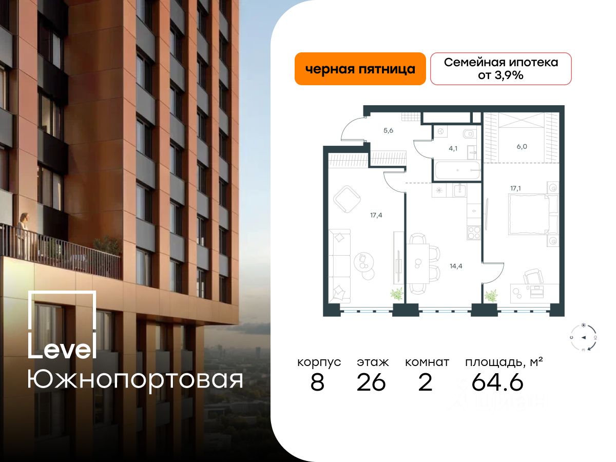 В северной части района Печатники продается 2-комнатная квартира площадью 64.60 кв.м без отделки. Квартира расположена на 26 этаже 49-этажного корпуса Корпус 8 в жилом комплексе комфорт-класса Level Южнопортовая (компания Level Group/Левел групп).