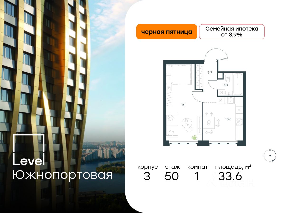 В северной части района Печатники продается 1-комнатная квартира площадью 33.60 кв.м без отделки. Квартира расположена на 50 этаже 68-этажного корпуса Корпус 3 в жилом комплексе комфорт-класса Level Южнопортовая (компания Level Group/Левел групп).