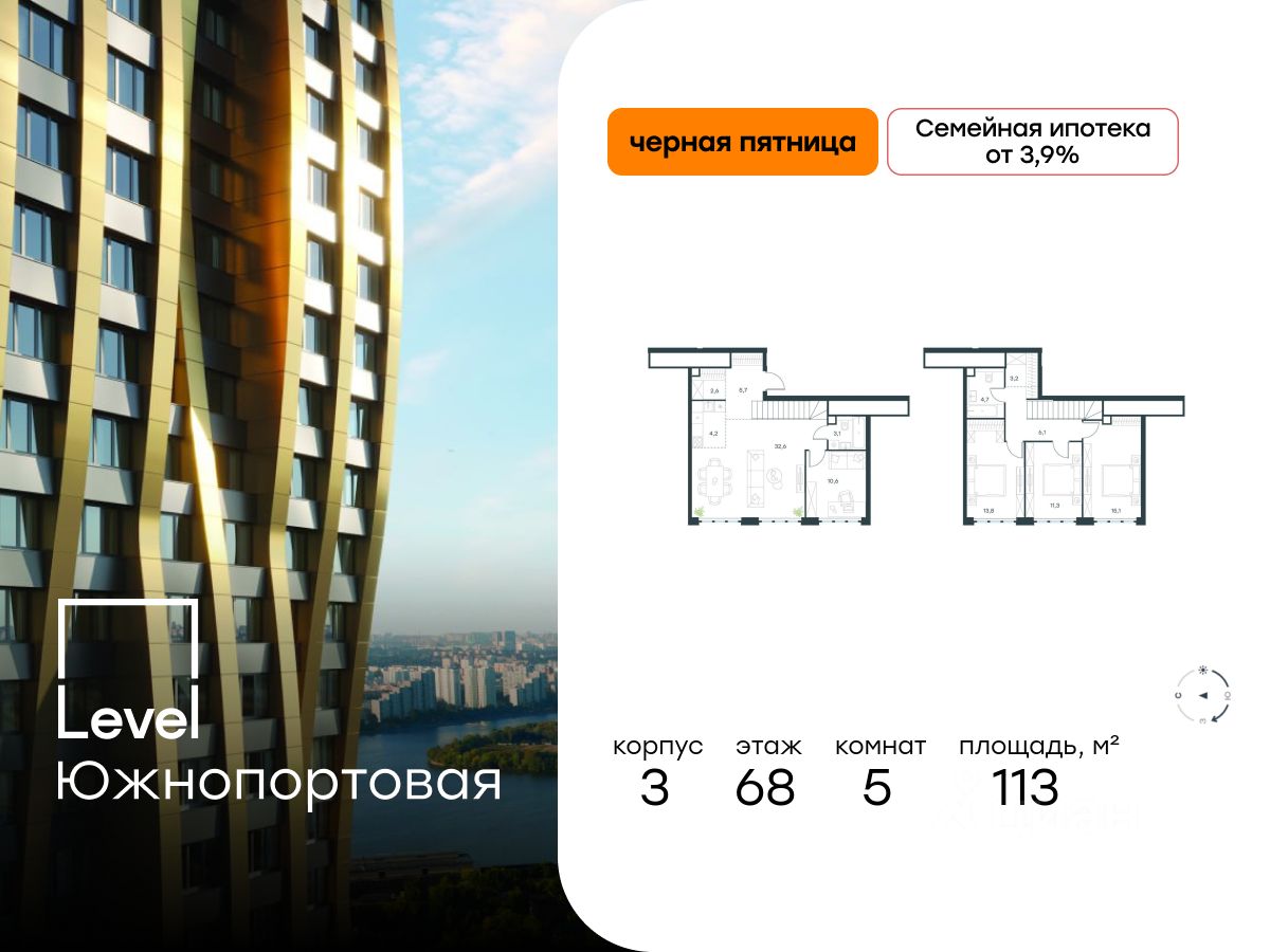 В северной части района Печатники продается многокомнатная квартира площадью 113.00 кв.м без отделки. Квартира расположена на 68 этаже 68-этажного корпуса Корпус 3 в жилом комплексе комфорт-класса Level Южнопортовая (компания Level Group/Левел групп).