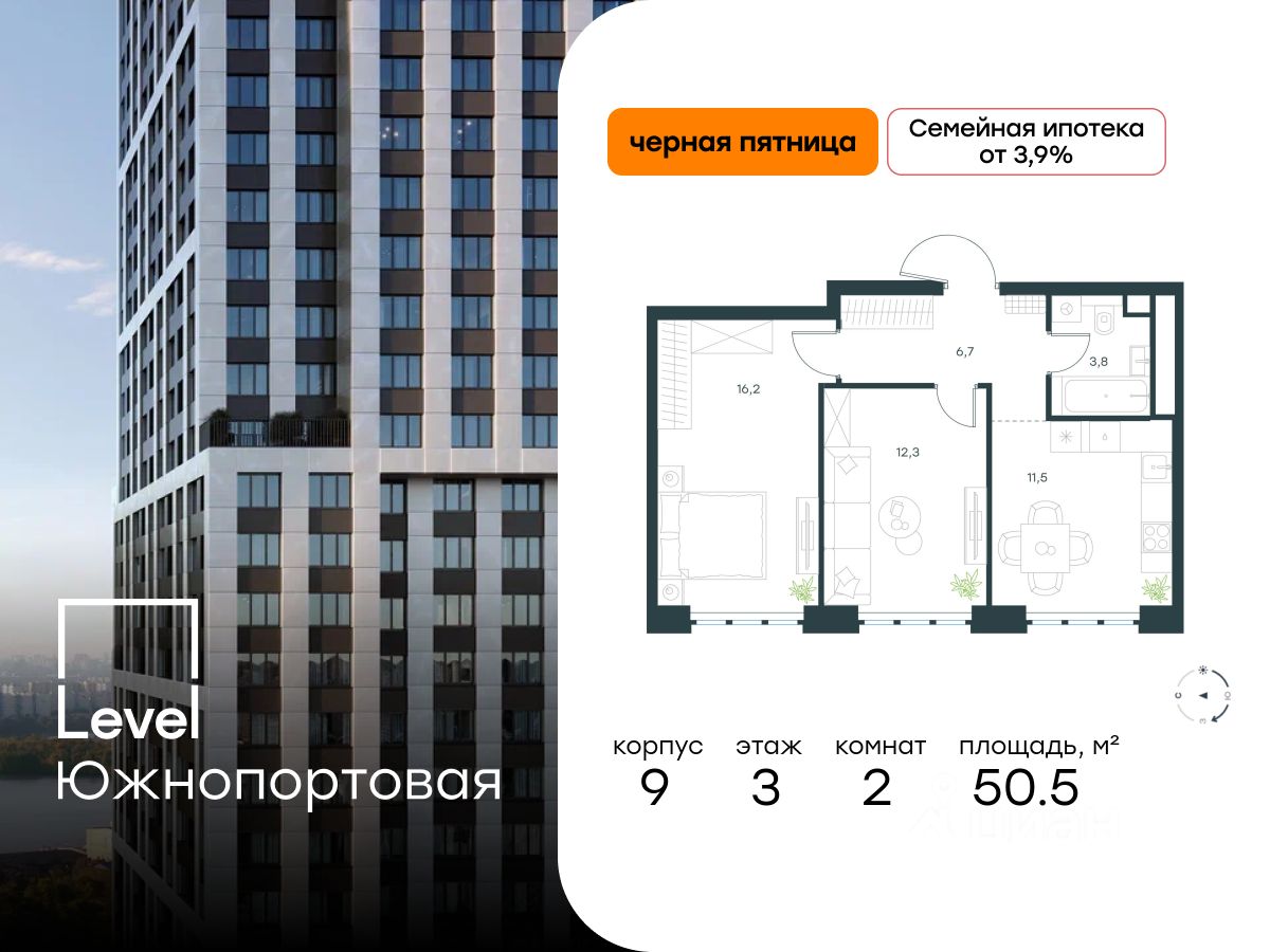 В северной части района Печатники продается 2-комнатная квартира площадью 50.50 кв.м с отделкой white box. Квартира расположена на 3 этаже 49-этажного корпуса Корпус 9 в жилом комплексе комфорт-класса Level Южнопортовая (компания Level Group/Левел групп).