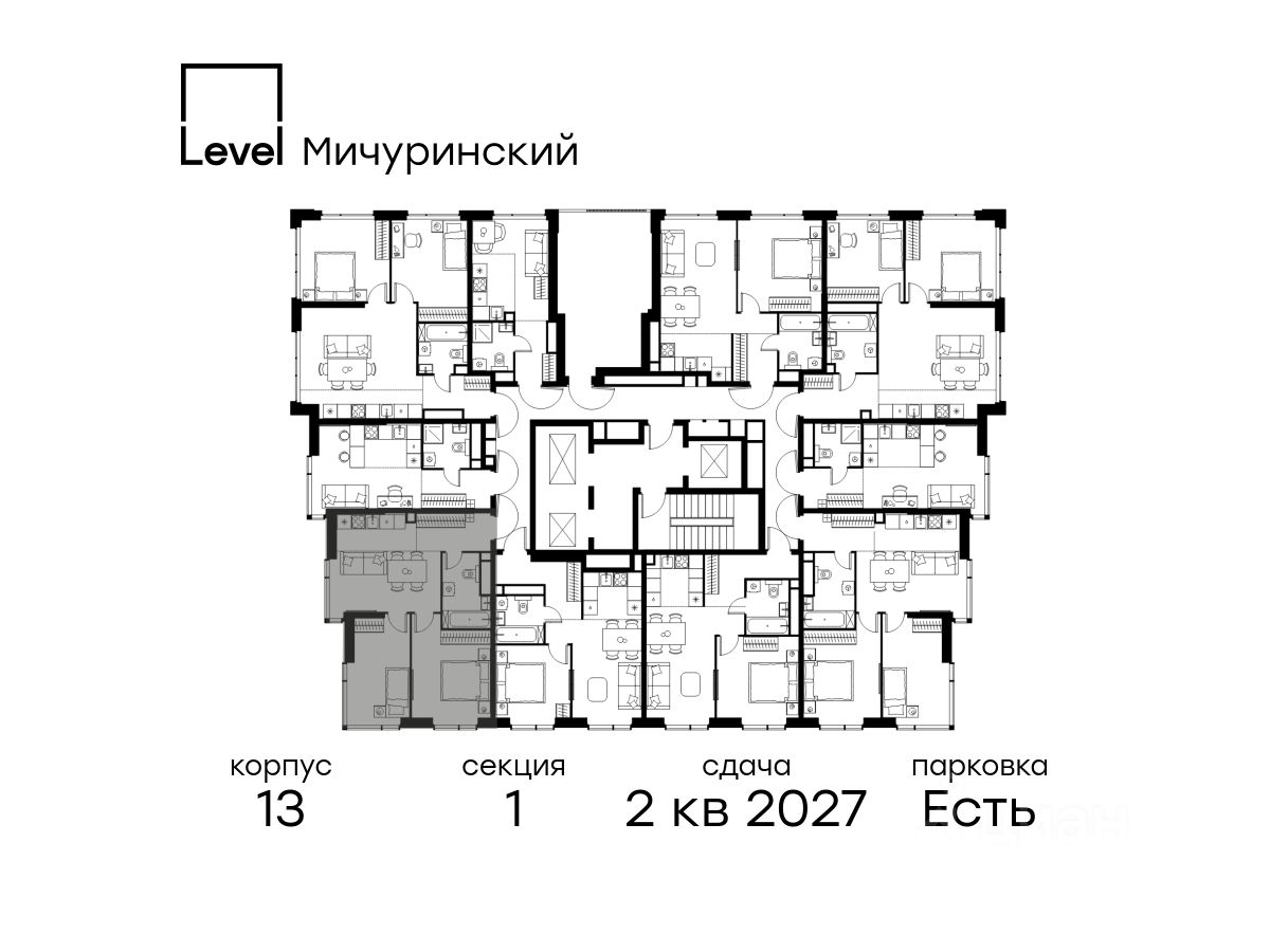 В жилом квартале, расположенном на границе с природным заказником "Долина реки Очаковки", продаётся 3-комнатная квартира площадью 53.00 кв.м без отделки. Квартира расположена на 23 этаже 31-этажного корпуса Корпус 13 в жилом комплексе бизнес-класса Level Мичуринский (компания Level Group/Левел групп).