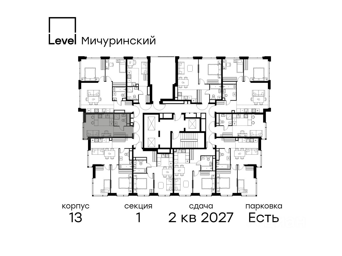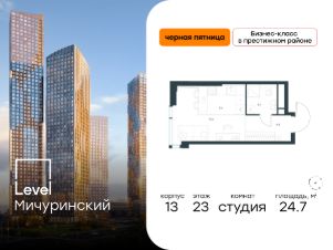В жилом квартале, расположенном на границе с природным заказником "Долина реки Очаковки", продаётся студия площадью 24.70 кв.м без отделки. Квартира расположена на 23 этаже 31-этажного корпуса Корпус 13 в жилом комплексе бизнес-класса Level Мичуринский (компания Level Group/Левел групп).