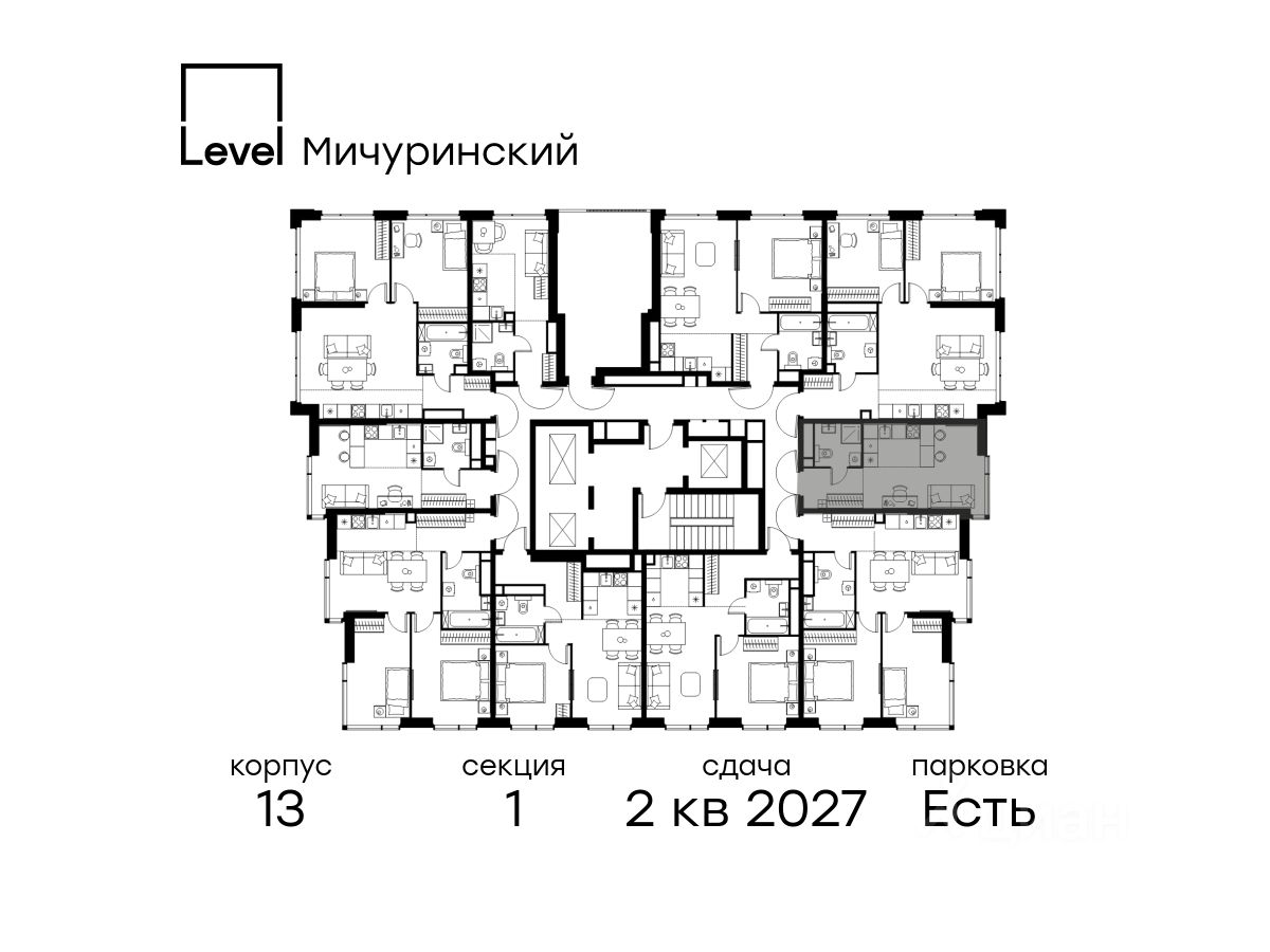 В жилом квартале, расположенном на границе с природным заказником "Долина реки Очаковки", продаётся студия площадью 25.90 кв.м без отделки. Квартира расположена на 23 этаже 31-этажного корпуса Корпус 13 в жилом комплексе бизнес-класса Level Мичуринский (компания Level Group/Левел групп).