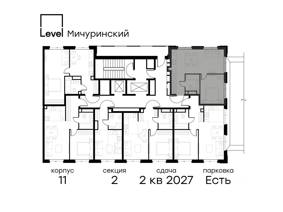 В жилом квартале, расположенном на границе с природным заказником "Долина реки Очаковки", продаётся 2-комнатная квартира площадью 41.70 кв.м без отделки. Квартира расположена на 12 этаже 24-этажного корпуса Корпус 11 в жилом комплексе бизнес-класса Level Мичуринский (компания Level Group/Левел групп).