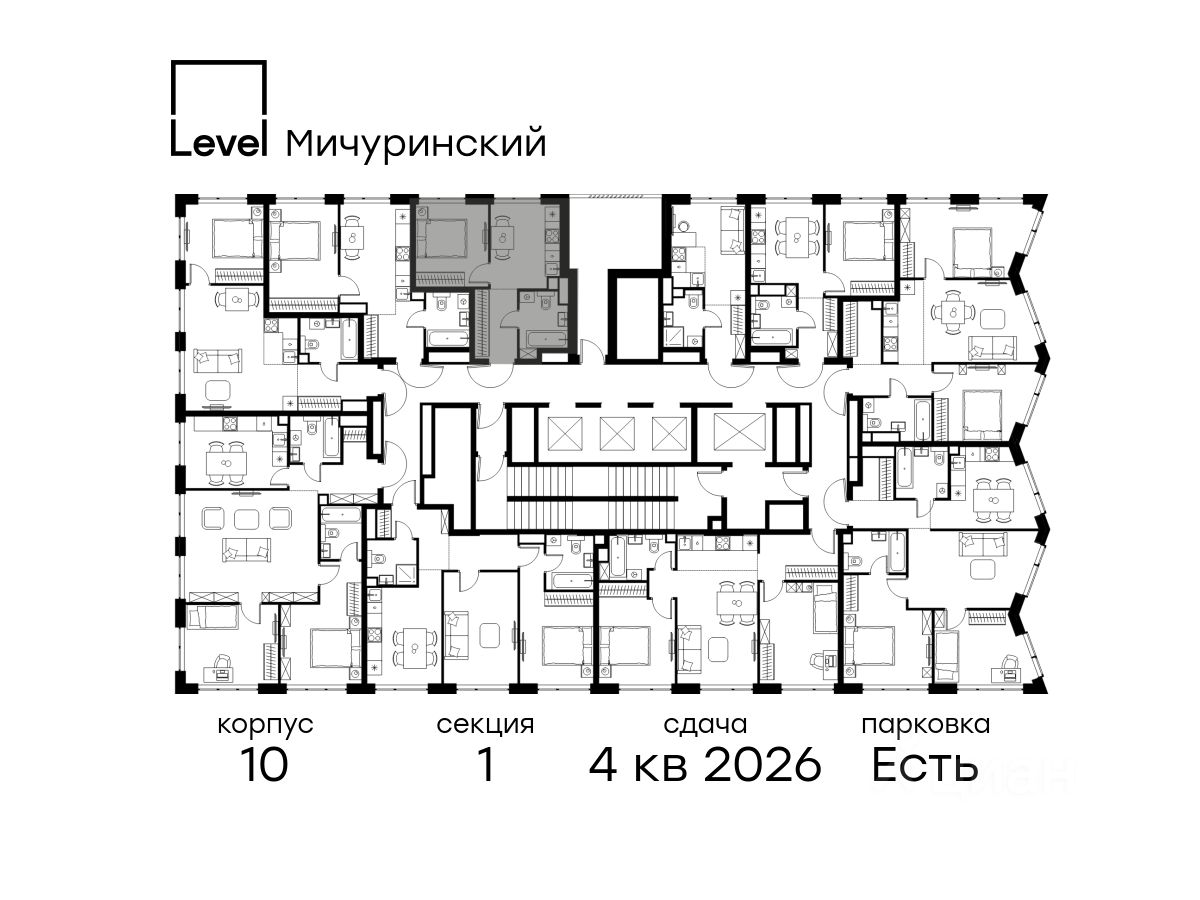 В жилом квартале, расположенном на границе с природным заказником "Долина реки Очаковки", продаётся 1-комнатная квартира площадью 29.60 кв.м с отделкой white box. Квартира расположена на 16 этаже 42-этажного корпуса Корпус 10 в жилом комплексе бизнес-класса Level Мичуринский (компания Level Group/Левел групп).