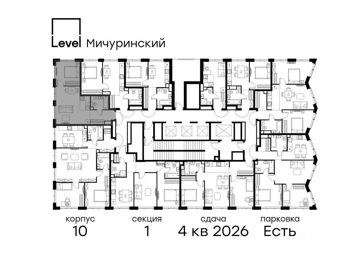 В жилом квартале, расположенном на границе с природным заказником "Долина реки Очаковки", продаётся 2-комнатная квартира площадью 42.30 кв.м с отделкой white box. Квартира расположена на 10 этаже 42-этажного корпуса Корпус 10 в жилом комплексе бизнес-класса Level Мичуринский (компания Level Group/Левел групп).