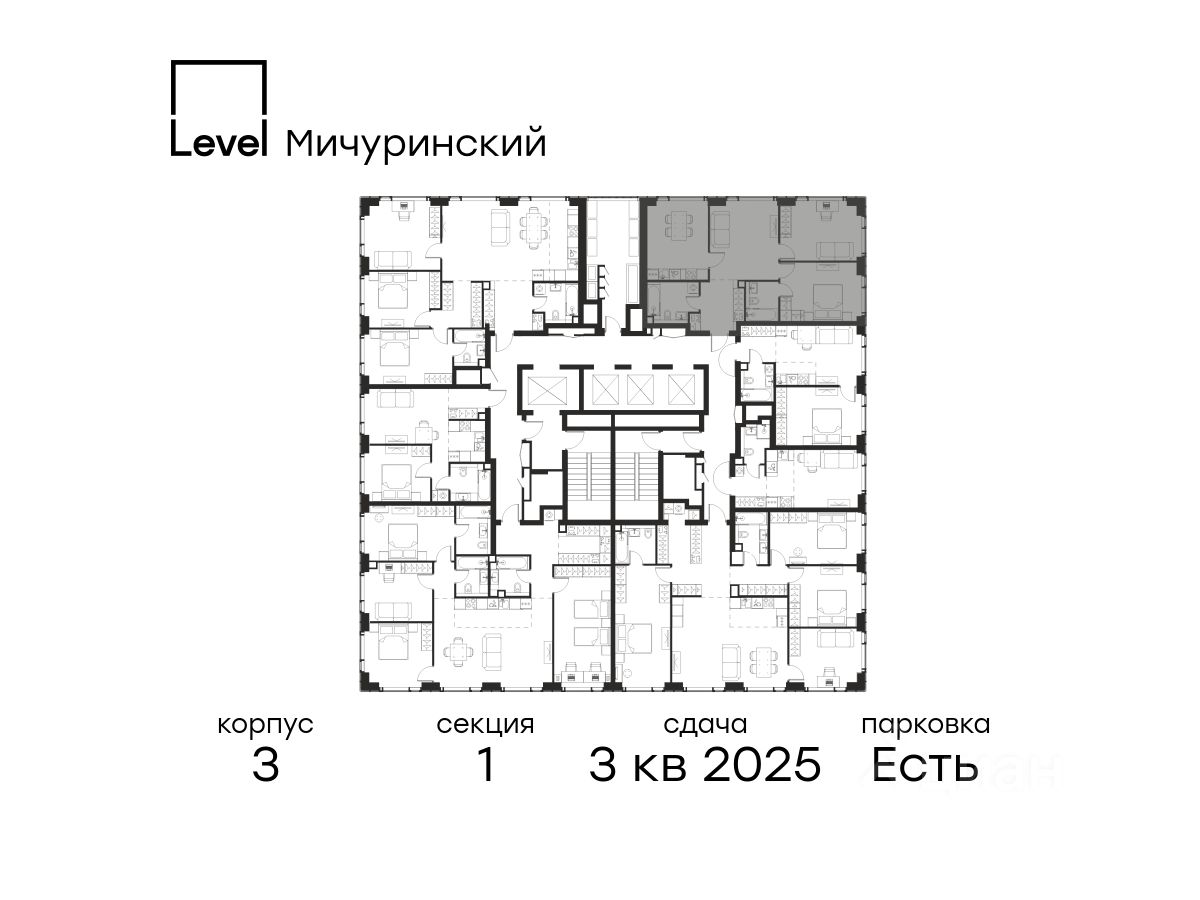 В жилом квартале, расположенном на границе с природным заказником "Долина реки Очаковки", продаётся 3-комнатная квартира площадью 74.80 кв.м с отделкой white box. Квартира расположена на 29 этаже 30-этажного корпуса Корпус 3 в жилом комплексе бизнес-класса Level Мичуринский (компания Level Group/Левел групп).