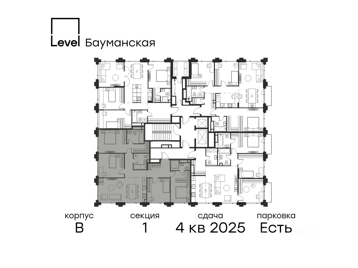 В Басманном районе (ЦАО) продается 5-комнатная квартира площадью 111.20 кв.м без отделки. Квартира расположена на 17 этаже 17-этажного корпуса "Корпус B" в жилом комплексе бизнес-класса Level Бауманская (компания Level Group).