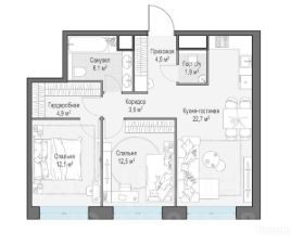 В продажу предлагается просторная двухкомнатная квартира 68,5 м2 с просторной кухня-гостиной!
