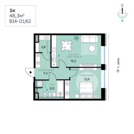 В продаже 1к квартира с чистовой отделкой общей площадью 48,3 кв. м. Квартира расположена на 1 этаже 11-этажной секции корпуса Optimum в новом Рублёво-Архангельском районе Москвы, который строит Сбер.