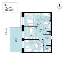 В продаже 2к квартира с чистовой отделкой общей площадью 78 кв. м. Квартира расположена на 1 этаже 10-этажной секции корпуса Optimum в новом Рублёво-Архангельском районе Москвы, который строит Сбер.