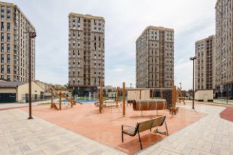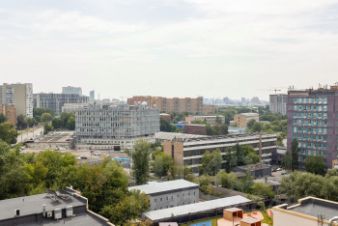 Квартира расположена на высоком 11 этаже, с красивым видом на улицу и зелёные зоны. Окна выходят во двор, который остаётся тихим и спокойным благодаря концепции "двор без машин" и на улицу - разные панорамы.