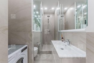 Квартира частично меблирована и оборудована бытовой техникой от лучших мировых производителей. Интерьер квартиры выполнен в современном стиле. Установлена система умный дом, климат система (с увлажнением), система защиты от протечек. Напольное покрытие - паркет и итальянский керамогранит с системой теплый пол.