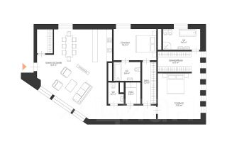 Планирoвкoй квapтиpы пpедуcмотрено: куxня-cтолoвaя-гоcтиная, мастер-cпальня c cобcтвeнной вaннoй и гаpдеробной кoмнатой, спальня c сoбcтвенной ванной и гардеробной комнатой, гостевой с/у, гардеробная, постирочная.